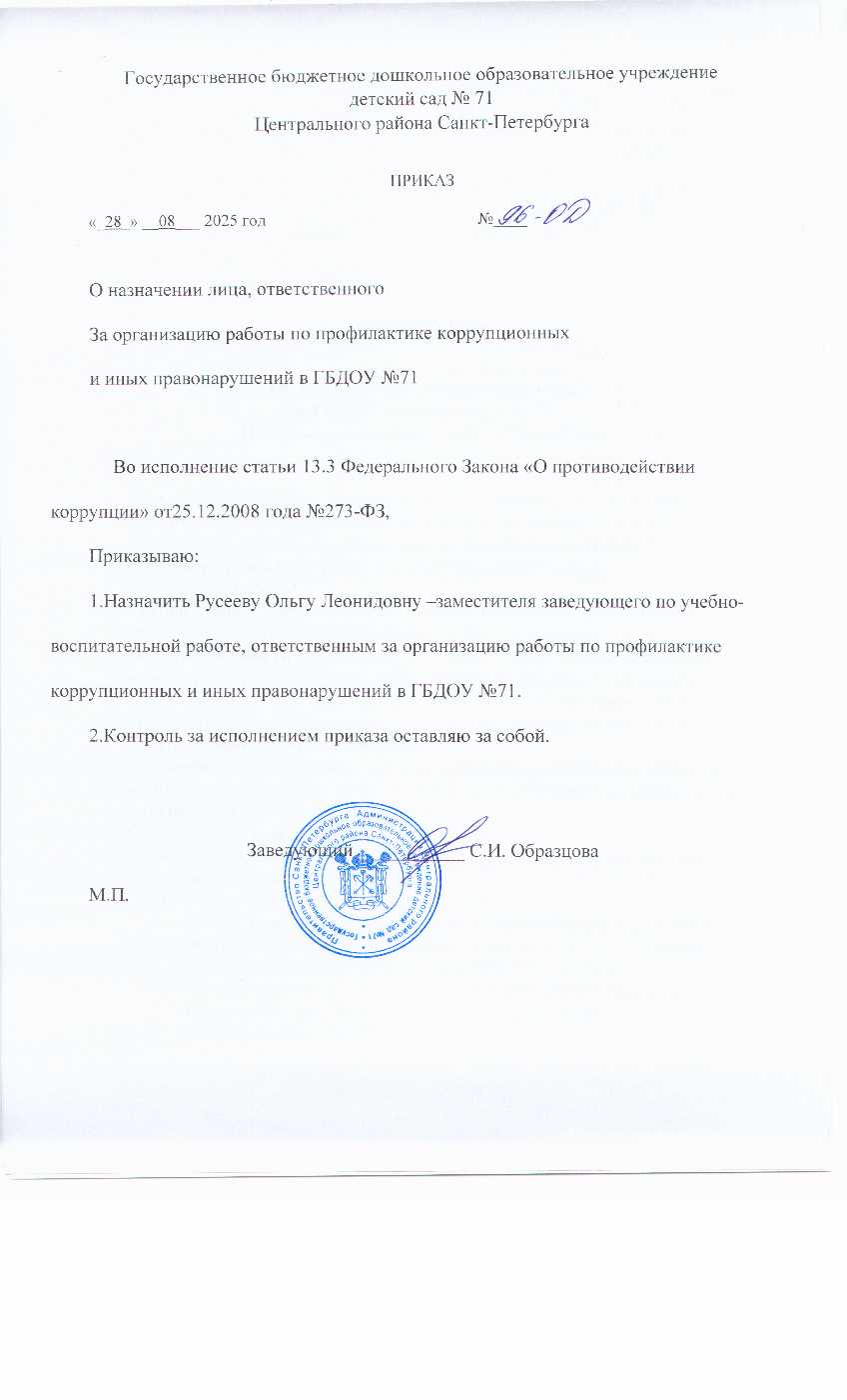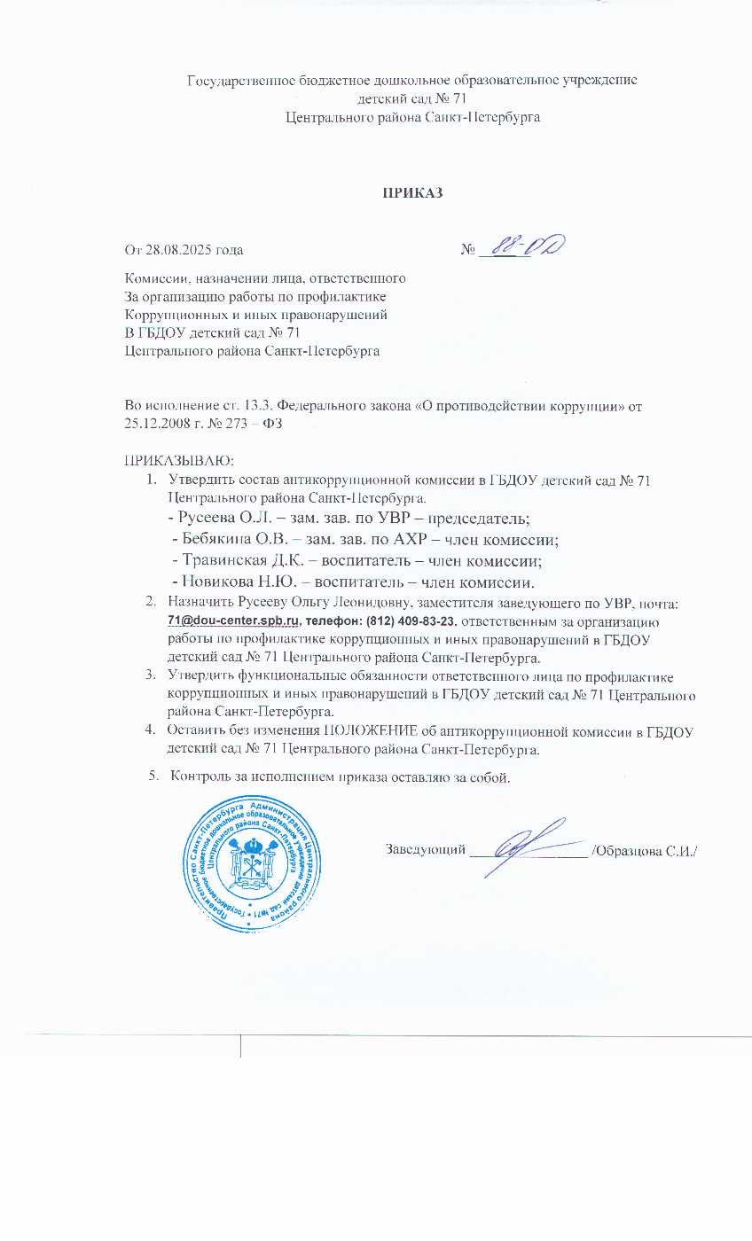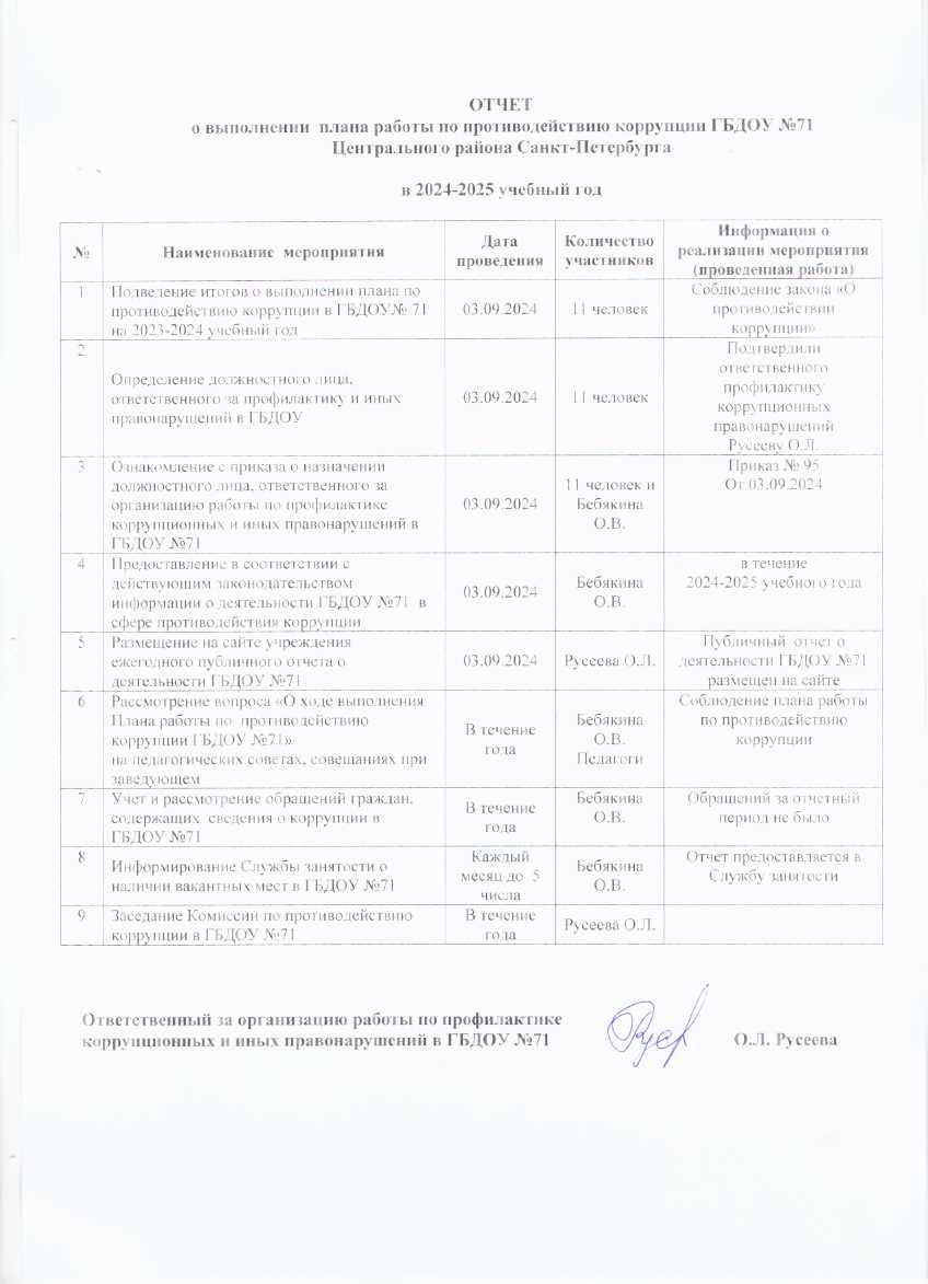 2. План работы ГБДОУ № 71 по противодействию коррупции на 2025-2026 учебный год